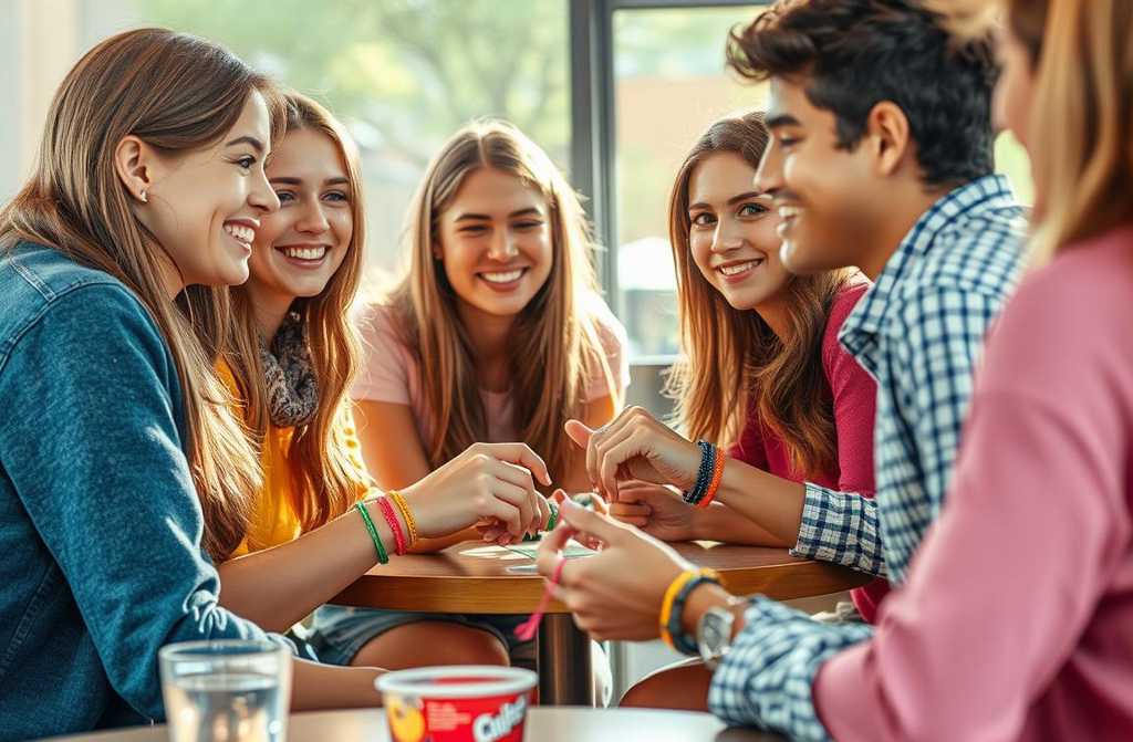 Inside, four chosen ones were already waiting at the first table, each with the freshly gifted bracelet laid out in front of them.