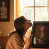 Olivia salió corriendo. Alejandro volvió a colocar la lámina y cerró la puerta de un golpe.