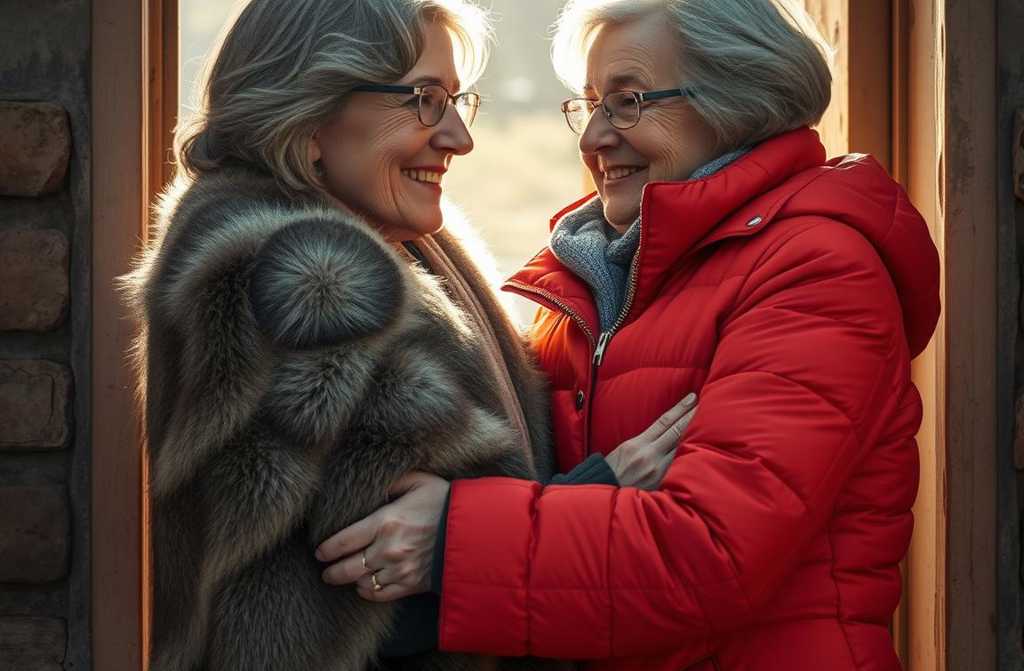 Berta vestía un elegante abrigo de plumón y una boina de visón con tacones modestos; sus labios estaban cubiertos de un rojo intenso. Yo, por mi parte, llevaba un abrigo gastado, botas de piel y una chal de plumón sobre los hombros.