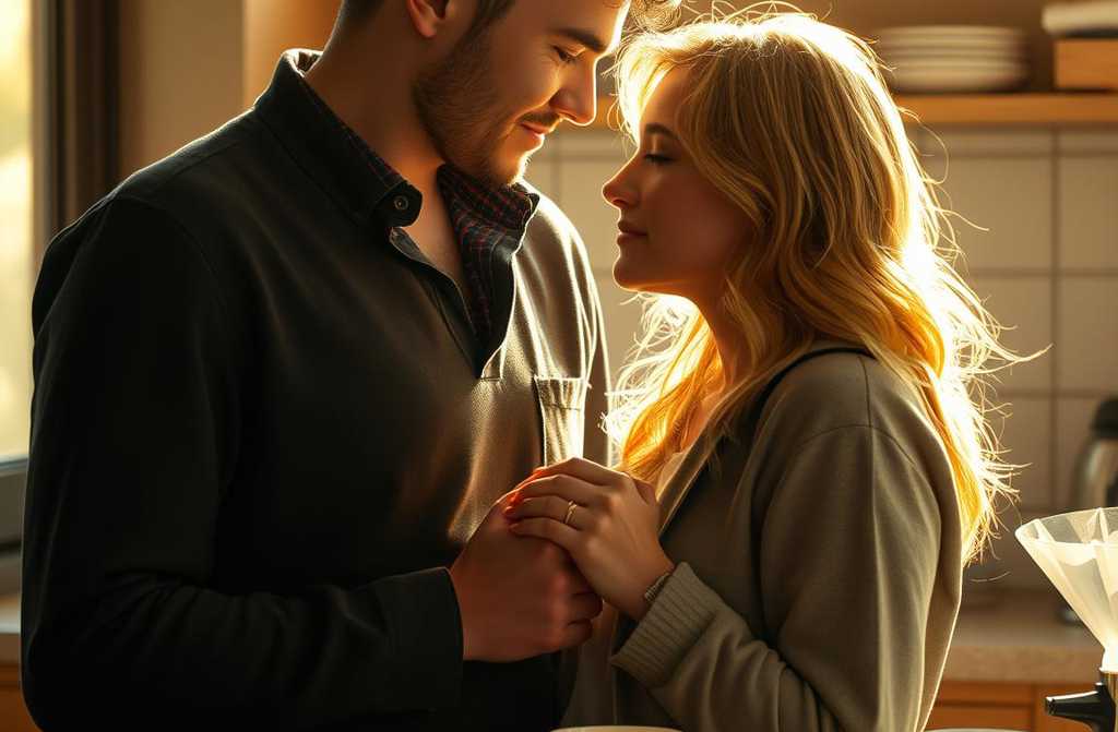 He scrambledshower, coffee (untouched)then the doorbell. Her eyes said everything. He slammed the door, pulled her close, and kissed her fiercely. She murmured *»Good morning,»* but he was beyond words.