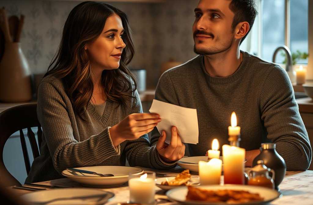Emily called him to dinner. He entered the kitchen and stopped at the doorway. The table was set beautifullywhite linen, candles, his favourite dishes: roast chicken, mashed potatoes, a fresh salad, and a cherry crumble.