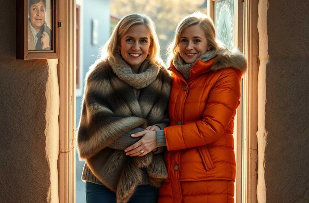 Liselotte, schlank, trug eine modische Daunenjacke, eine verspielte Nerzhut mit einem kleinen Absatz, ihre Lippen glänzten im Lippenstift. Ich hingegen, in einem altmodischen Mantel, trug Filzschuhe und einen dicken Daunenschal.