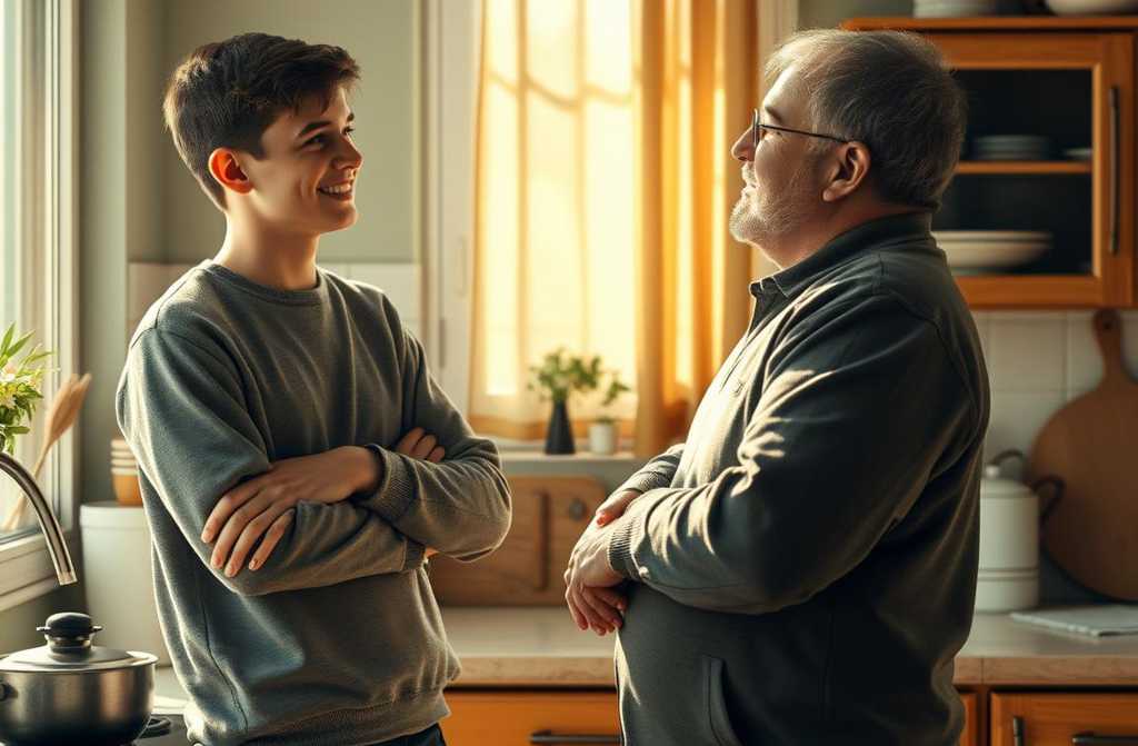 When the door closed, Oliver and Arthur remained in the kitchen, unsure where to look.
