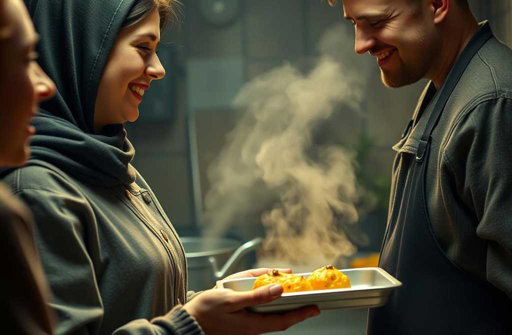 The smell of boiled cabbage and cheap bread, the tired, indifferent faces in line, the hum of voicesit all hit me. I mechanically plated buckwheat and goulash, then froze.