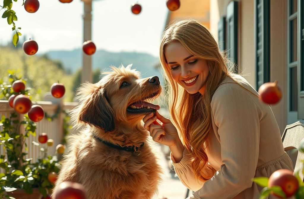 Als ich ankomme, finde ich sie auf der Veranda, wie sie große rote Äpfel schält. Neben ihr liegt, auf der Holzstufe, ein Hund entspannt daliegend.