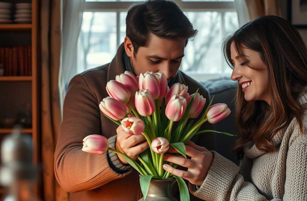 Javier y Luz siguieron sentados durante mucho tiempo, tomando té y conversando en voz baja. En la vieja vasija sobre la mesa, los tulipanes llenaban la habitación y los corazones con el dulce aroma de la primavera. Así aprendieron que, incluso en los días más fríos, una pequeña flor puede encender la calidez interior y recordarnos que la vida florece cuando la compartimos con los que amamos.