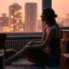 La puerta le abre una mujer joven, esbelta y de aspecto elegante, vestida con un blazer gris.
