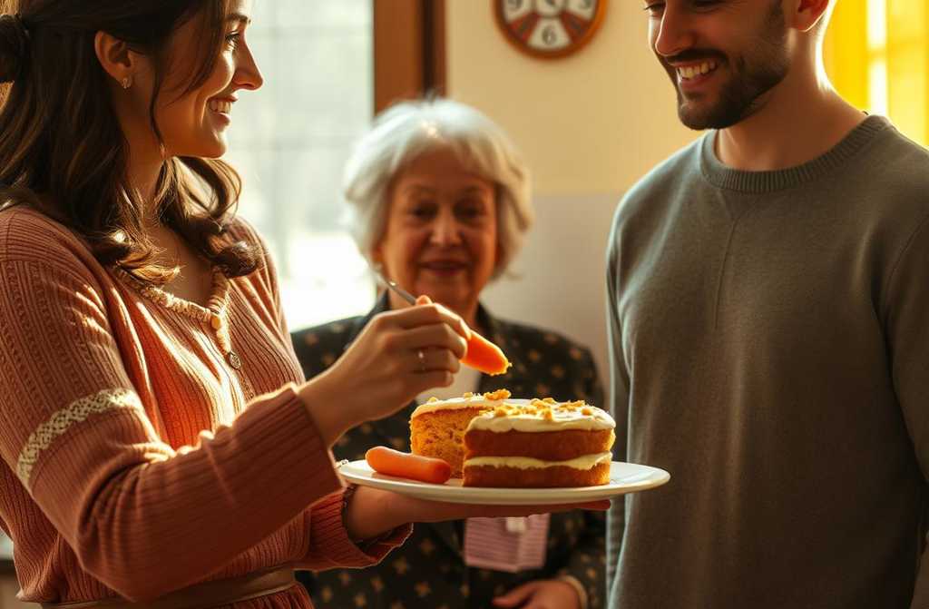 That evening I bought ingredients for a carrot cake Andrews favourite planning to bake it on Saturday as a surprise for the whole family. The flat was quiet, a single kitchen lamp casting a warm pool of light. I slipped off my shoes and entered, only to find Margaret at the table, happily digging into a casserole I had prepared for breakfast, the whole dish meant for three.
