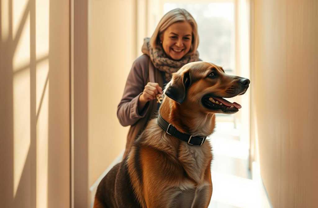 An hour later James arrived at the door, leash in hand. Duke bounded in, leaving muddy footprints on the pristine floor.