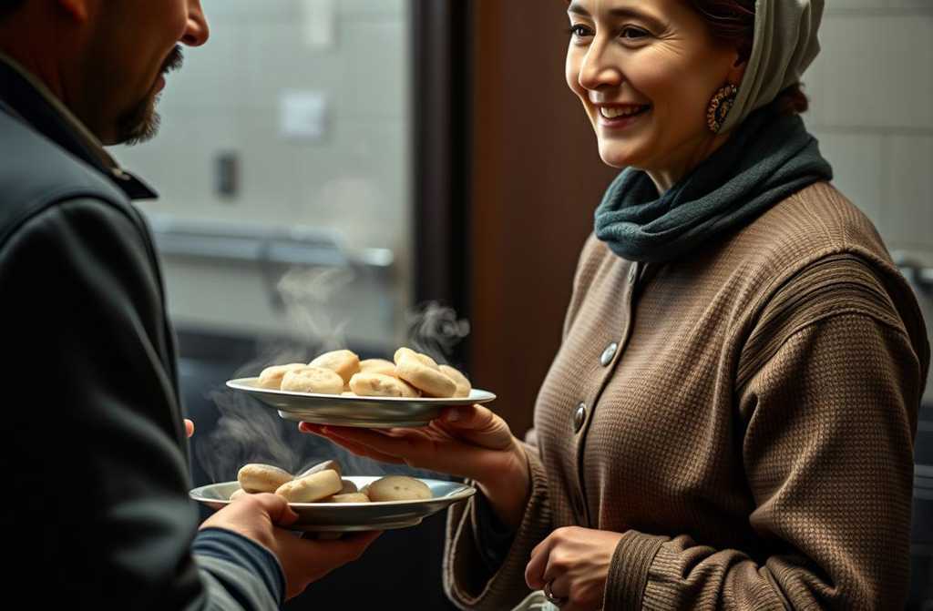 One day I turned up unannounced, in simple clothes, serving food with volunteers. I wanted to see everything from the insidethe smell of boiled cabbage and cheap bread, the tired, indifferent faces in line, the hum of voices. I worked mechanically, plating buckwheat and stew, when I froze.