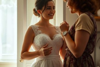 Margaret Clarke gently pulls her daughters wedding dress from the wardrobe, smoothing the crisp white