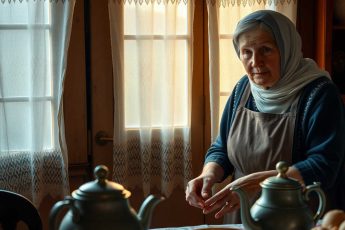 Oh, my boys arrived! exclaimed Evelyn, her eyes bright. Nicholas pressed his battered flat cap to the doorway.