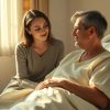 У окна села женщина в простом, но аккуратном пальто, её лицо было скрыто густой тенью, а глаза залиты слезами. Её руки дрожали, сжимая чашку горячего кофе, пар от которого едва касался её губ. В её взгляде смешались усталость и отчаяние, а губы беззвучно шептали слова, понятные только ей самой. Официант, молодой парень с заботливым выражением лица, заметил её состояние и тихо приблизился, не нарушая тишины.