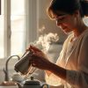 За окном мелко моросил дождь, смешиваясь с городским гулом и приглушённым светом уличных фонарей, которые лениво пробивались сквозь густой туман начала осени. В маленьком уютном кафе на углу улицы пахло свежемолотым кофе и хрустящей выпечкой, а сквозь широкие окна просачивались обрывки разговоров прохожих и редкий стук капель по стеклу. Тусклый свет настольных ламп, мягко освещавший деревянные столы, создавал чувство уюта и защищённости, из которого казалось невозможным выйти. В один из таких вечеров, когда душа жаждет тишины и тепла, привычный ритм кафе внезапно прервала женщина, сидевшая за соседним столиком.