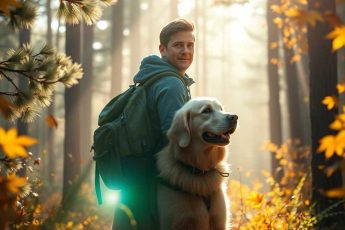 A weary dog emerged from the woods with a backpack strapped to its side. The contents would soon stir