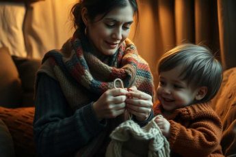 **The Scarf of Scraps** Mum was never one to sit idle. Whenever she had a spare moment, shed pick up