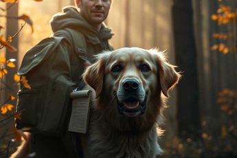 A weary dog emerged from the woods with a backpack strapped to his back. Its contents would soon give