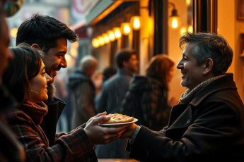 Late evening in a little café on the corner of a side street. The walls are a warm ochre, rain runs lazily